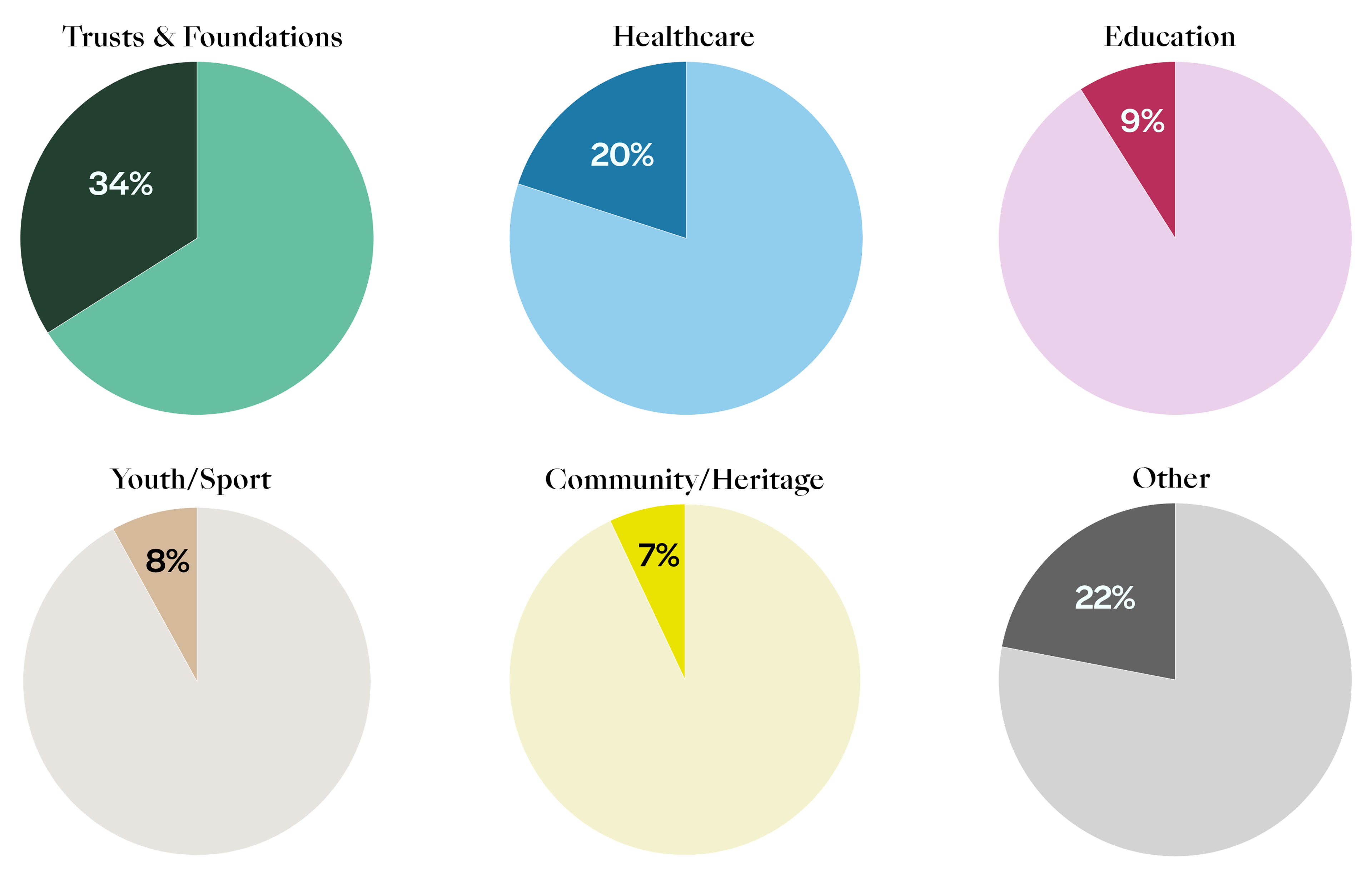 We work with a broad range of UK charities, each with distinct objectives, governance structures, and funding needs. The charities we support typically fall into the following groups: Trusts & Foundations, Healthcare, Education, Youth/Sport and Community/Heritage.